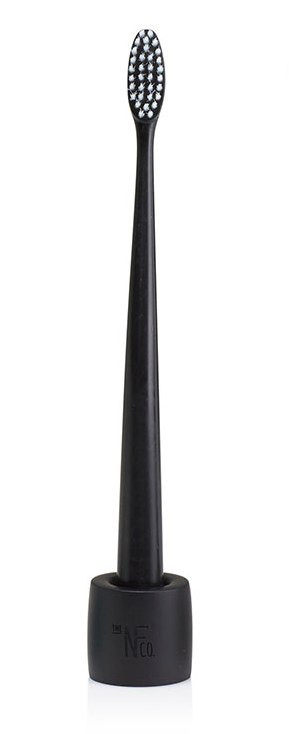 Periuta de dinti bio Nfco este complet biodegradabila, inclusiv ambalajul. Manerul este realizat din amidon de porumb nemodificat genetic, iar perii din nylon nu contin BPA.