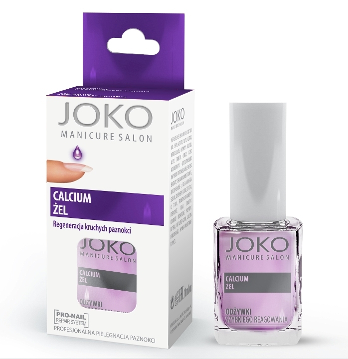 Calcium gel este un tratament revitalizant si conditionator, intens hidratant pentru unghiile fragile. Este recomandat in special pentru femeile care petrec mult timp cu mainile in apa. Tratamentul intareste unghiile care se rup usor in contactul cu obiecte dure si le protejeaza de daunele mecanice. Intregedientele active sunt: calciu pantetonat, vitamina E, extract de alge, ulei de rosa mosqueta. Se poate folosi ca baza (base coat).