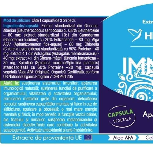 Alga AFA conţine una din cele mai echilibrate, complete şi complexe formule de nutrienţi, iar alături de Extractul de Ganoderma, Ginseng, Gheara-mâţei, Spirulină şi Chlorella, care sunt puternice imunostimulatoare, contribuie la protejarea organismului.