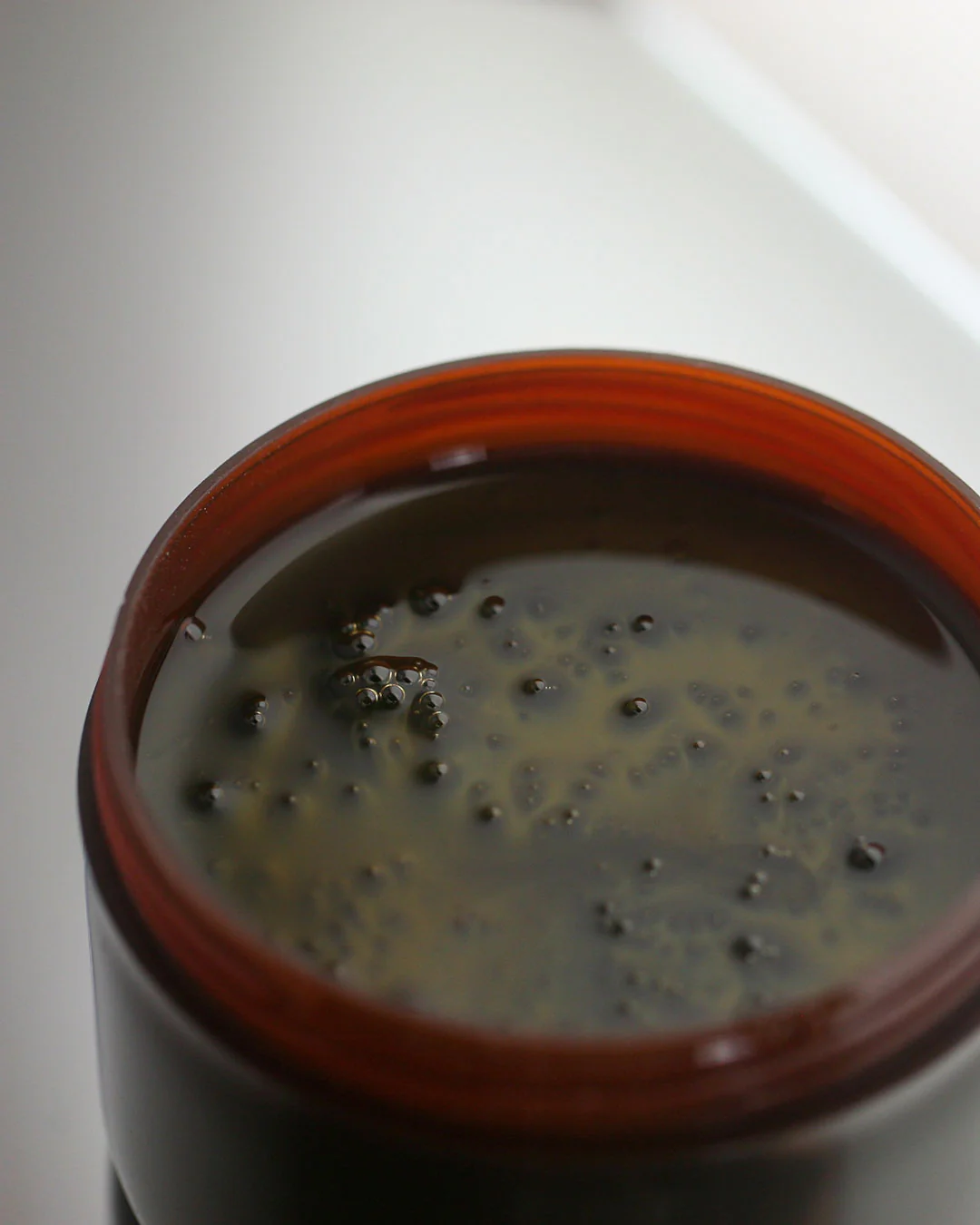 Produsul este fabricat manual si se poate lichefia insa nu isi pierde proprietatile. Pentru a evita lichefierea, luati sapunul din borcan cu mana uscata!